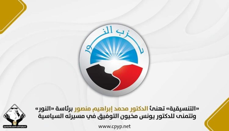 «التنسيقية» تهنئ الدكتور محمد إبراهيم منصور برئاسة «النور» وتتمنى للدكتور يونس مخيون التوفيق في مسيرته السياسية