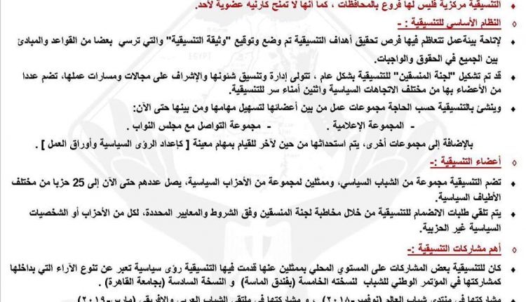 النظام الأساسي لتنسيقية شباب الأحزاب و السياسيين