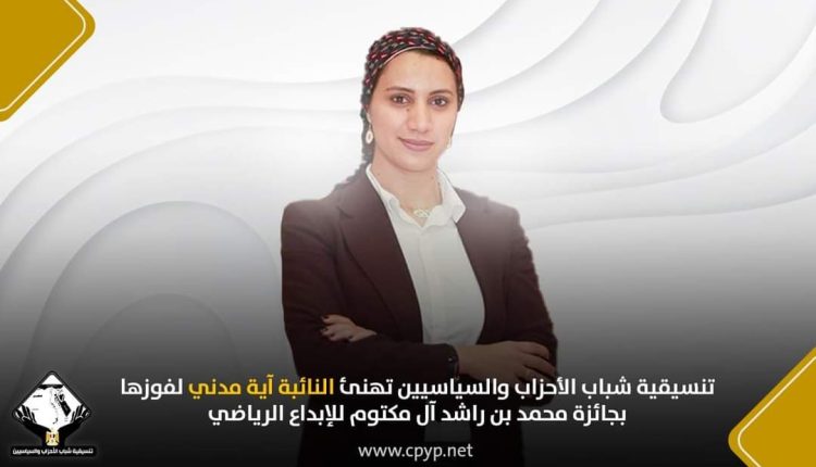 تنسيقية شباب الأحزاب والسياسيين تهنئ النائبة آية مدني لفوزها بجائزة محمد بن راشد آل مكتوم للإبداع الرياضي