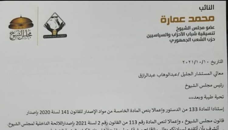 ووجه النائب عبدالخالق عياد رئيس لجنة الطاقة والبيئة والقوى العاملة، برفع تقرير للمستشار عبدالوهاب عبدالرزاق رئيس مجلس الشيوخ، واتخاذ المسار القانوني التشريعي لخروج الاقتراح إلى النور، نظرا لأهميته للدولة المصرية.