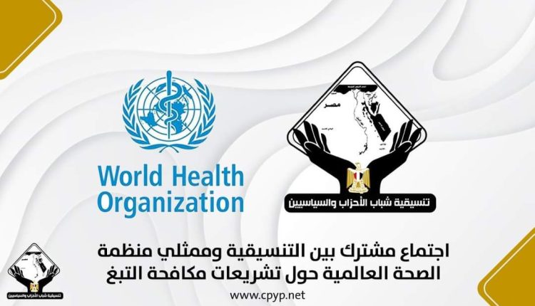 عقدت تنسيقية شباب الأحزاب والسياسيين، اجتماعا مشتركا مع ممثلي منظمة الصحة العالمية في مصر، حول تشريعات وجهود مكافحة انتشار التبغ ومنتجاته، وذلك في إطار سعي التنسيقية للتعاون مع جميع الأطراف الفاعلية في صناعة السياسات وقضايا التنمية محلياً ودولياً.