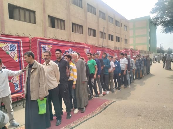 اصطفاف أمام اللجان بقها بمحافظة القليوبية ومشاركة ذوي الهمم في التصويت بانتخابات مجلس النواب