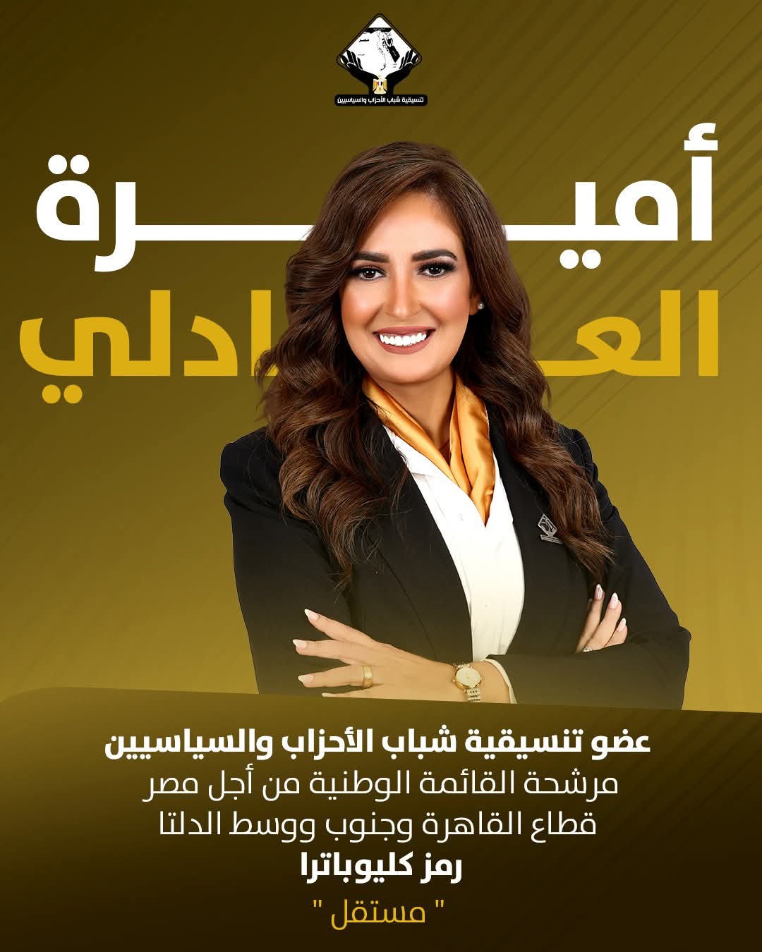 البرنامج الانتخابي للمرشحة أميرة العادلي عضو تنسيقية شباب الأحزاب والسياسيين، مرشحة القائمة الوطنية من أجل مصر قطاع القاهرة وجنوب ووسط الدلتا (رمز كليوباترا مستقل)
