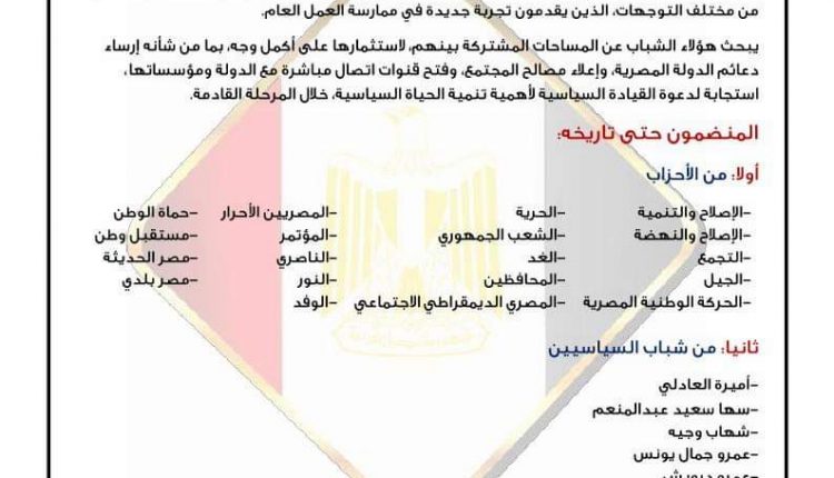 – الإصلاح والتنمية – الحرية – المصريين الأحرار