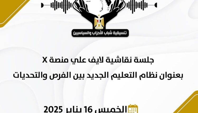 تعقد تنسيقية شباب الأحزاب والسياسيين، في الساعة التاسعة مساء اليوم، جلسة نقاشية على منصة X، لمناقشة مقترح نظام التعليم الجديد ” البكالوريا ” وكيف سيتم تنفيذه، وكيف يمكن أن يساهم هذا النظام في تحسين جودة التعليم في مصر وهل يلبي احتياجات الطالب المصري؟.