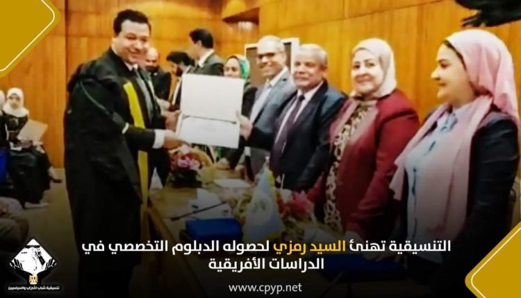 تهنئ تنسيقية شباب الأحزاب والسياسيين السيد رمزي السيد أحمد، عضو التنسيقية، بمناسبة حصوله على الدبلوم التخصصي في الدراسات الأفريقية من كلية الدراسات الأفريقية العليا بتقدير جيد جداً.