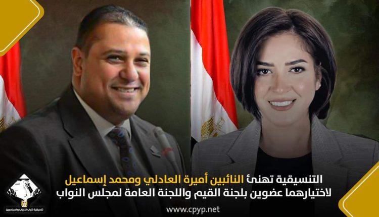 التنسيقية تهنئ النائبين أميرة العادلي ومحمد إسماعيل لاختيارهما عضوين بلجنة القيم واللجنة العامة لمجلس النواب