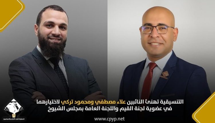التنسيقية تهنئ النائبين علاء مصطفي ومحمود تركي لاختيارهما في عضوية لجنة القيم واللجنة العامة بمجلس الشيوخ