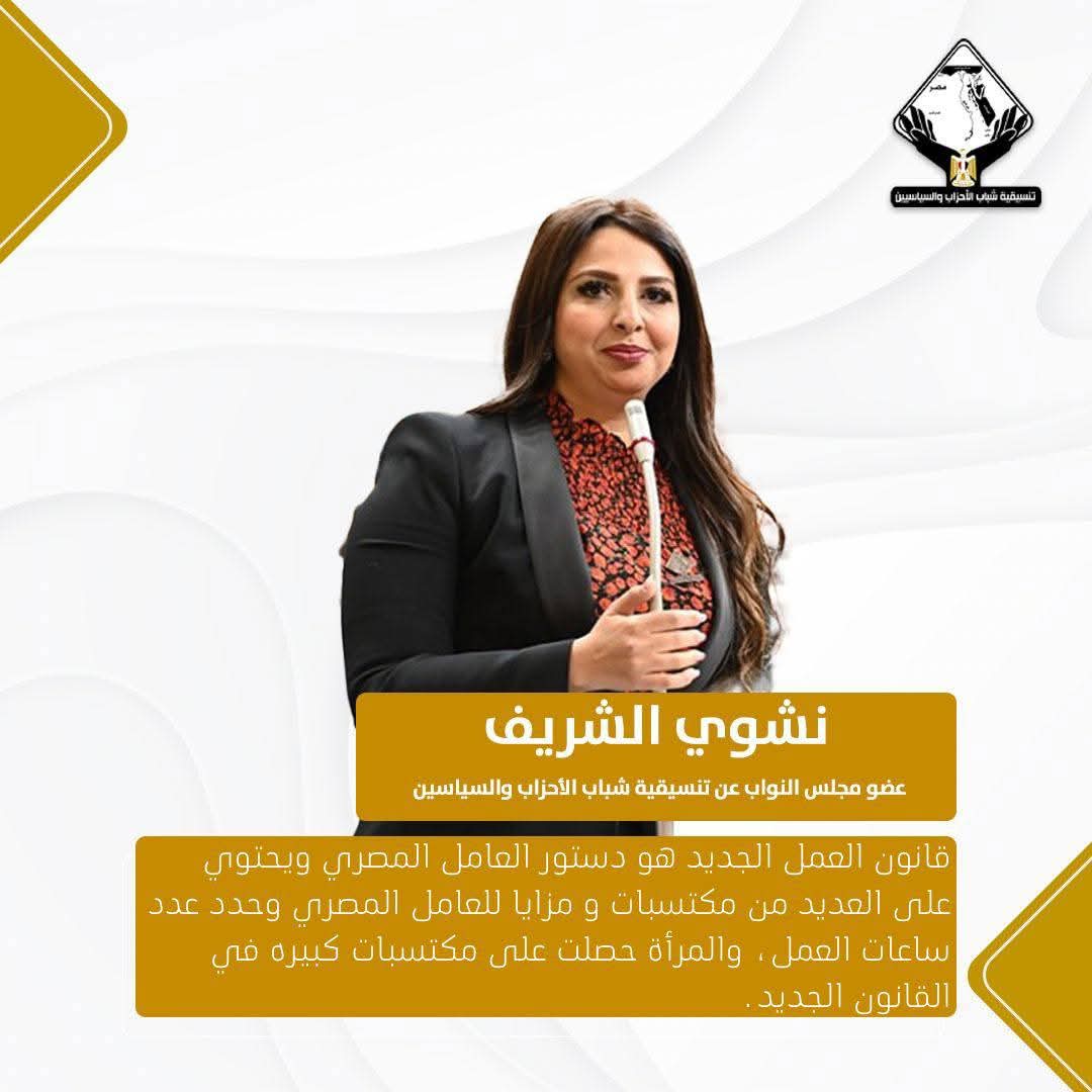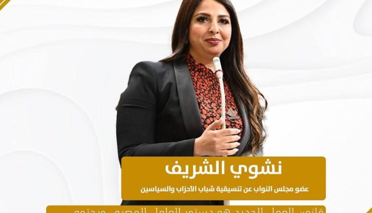 وقالت النائبة نشوى الشريف عضو مجلس النواب عن تنسيقية شباب الأحزاب والسياسيين، إن قانون العمل الجديد هو دستور العامل المصري، مشيرة إلى أن سوق العمل المصري أصبح الأغلبية به من القطاع الخاص، ولم تكن هناك رقابة كبيرة أو محددات للعلاقة داخل القطاع الخاص.