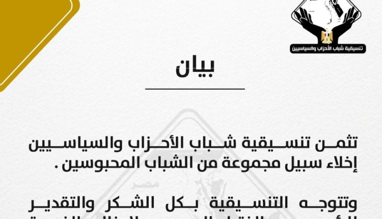 وتتوجه التنسيقية بكل الشكر والتقدير للرئيس عبد الفتاح السيسي لإدخاله الفرحة على قلوب أسر هؤلاء الشباب قبل عيد الفطر المبارك.