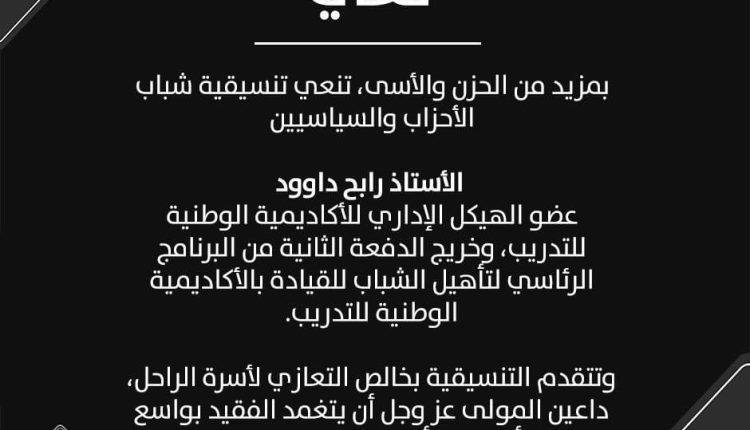 تنسيقية شباب الأحزاب والسياسيين تنعي رابح داوود