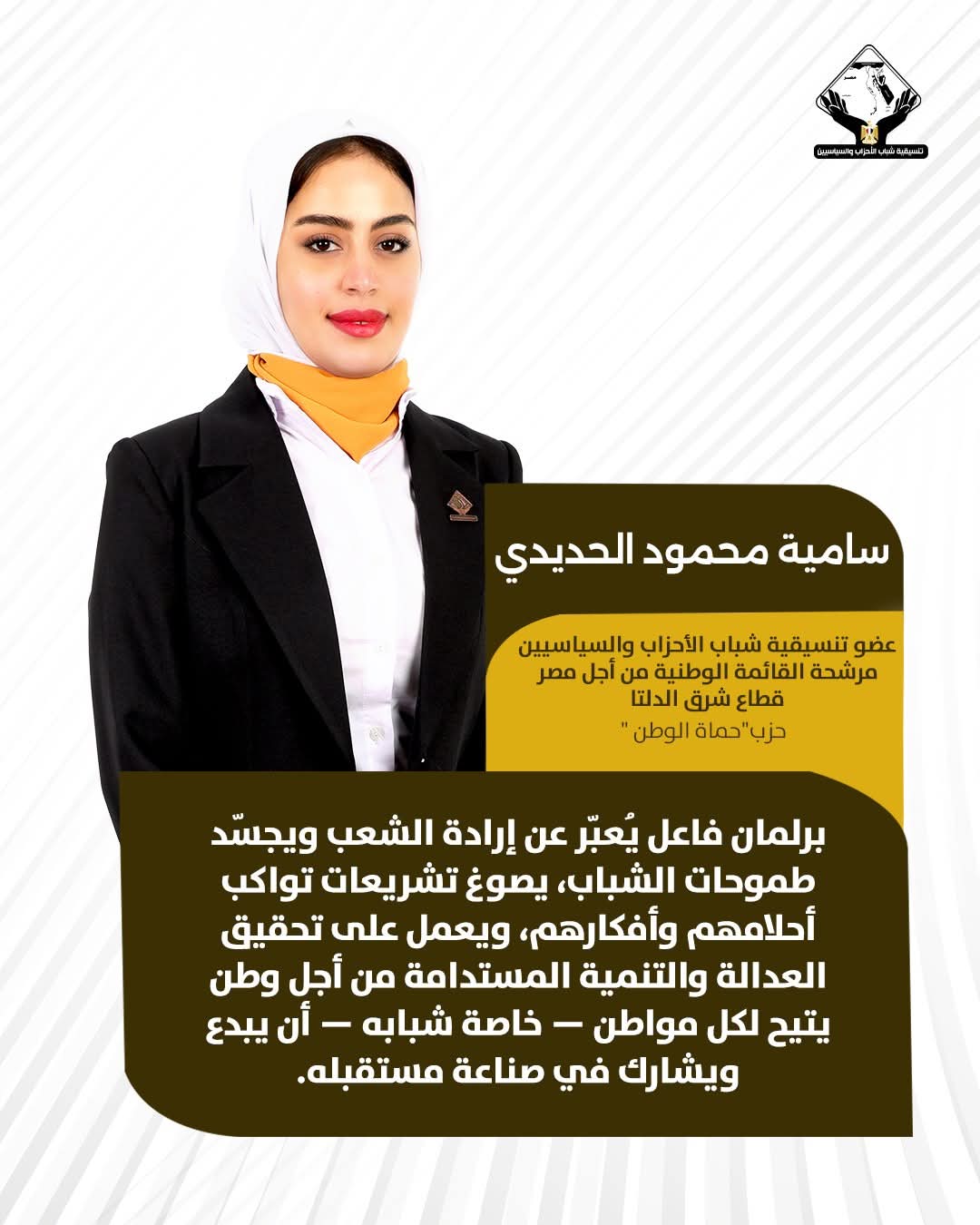 الأخبار سامية محمود الحديدي بواسطة مدير الموقع في Nov 19, 2025 شارك سامية محمود الحديدي عضو تنسيقية شباب الأحزاب والسياسيين مرشحة القائمة الوطنية من أجل مصر قطاع شرق الدلتا (عن حزب حماة الوطن) “-برلمان فاعل يعبر عن إرادة الشعب ويجسد طموحات الشباب، يصوغ تشريعات تواكب أحلامهم وأفكارهم” شارك FacebookTwitterGoogle+ReddItWhatsAppPinterestالبريد الإلكتروني