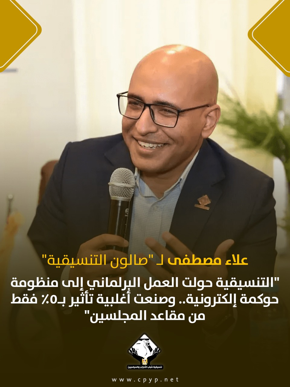 علاء مصطفى لـ “صالون التنسيقية”: التنسيقية حولت العمل البرلماني إلى منظومة حوكمة إلكترونية.. وصنعت أغلبية تأثير بـ5% فقط من مقاعد المجلسين