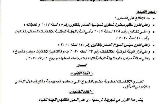 قرارات الهيئة الوطنية للانتخابات الخاص بانتخابات مجلس الشيوخ