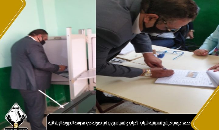 أدلى محمد عزمي، عضو تنسيقية شباب الأحزاب والسياسيين، المرشح على القائمة الوطنية من أجل مصر، في انتخابات مجلس الشيوخ، بصوته، في لجنة مدرسة العروبة الابتدائية بمنطقة النزهة.