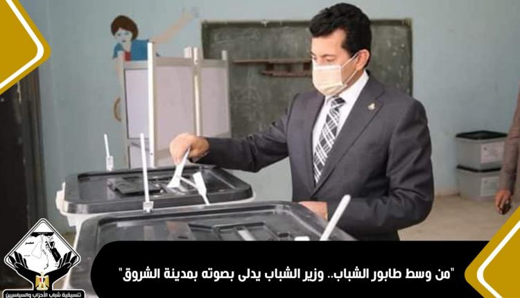 “من وسط طابور الشباب.. وزير الشباب يدلى بصوته بمدينة الشروق”
